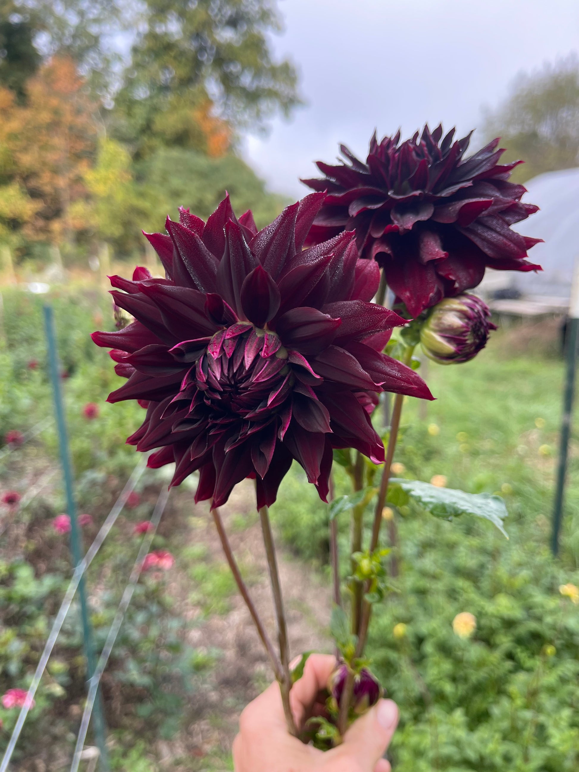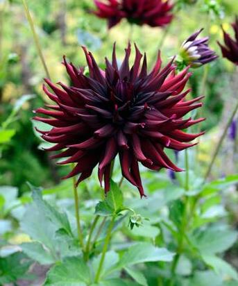 A dramatic, dark dark maroon semi-cactus-type dahlia. It has nice long stems, and is a fairly good tuber producer.
