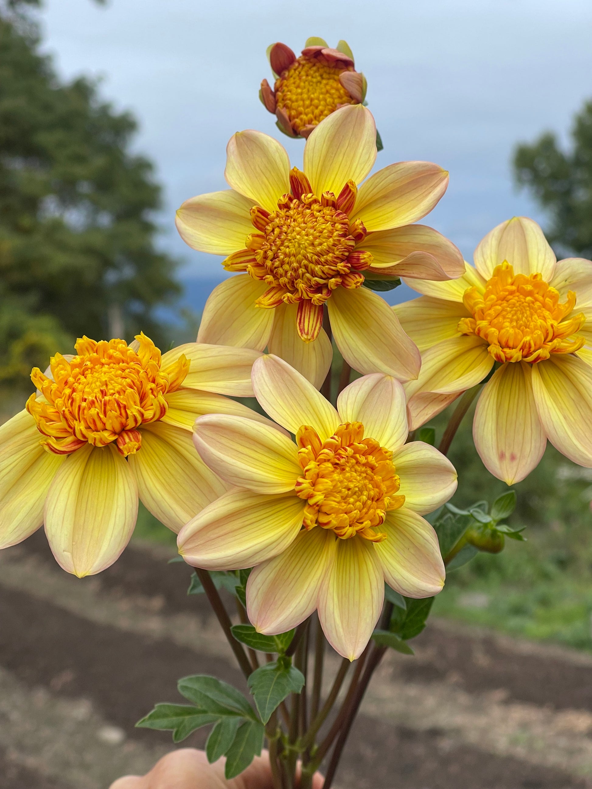A delightful anemone type with 3" flowers, with a golden center and pale yellow-to-blush petals, on looooong and strong stems.