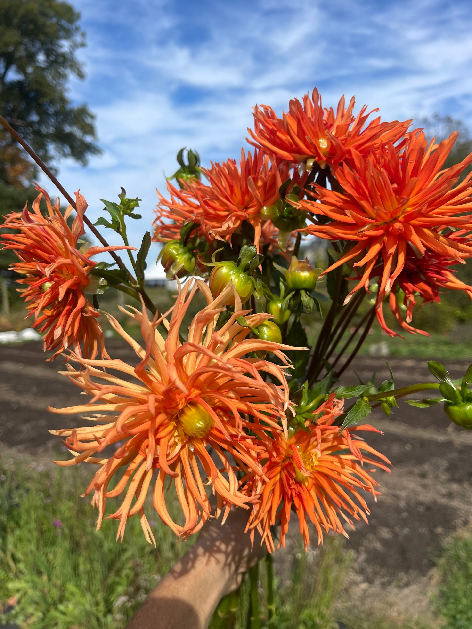 This bright orange cactus type dahlia was introduced in 1966. It grows on thin but sturdy stems.