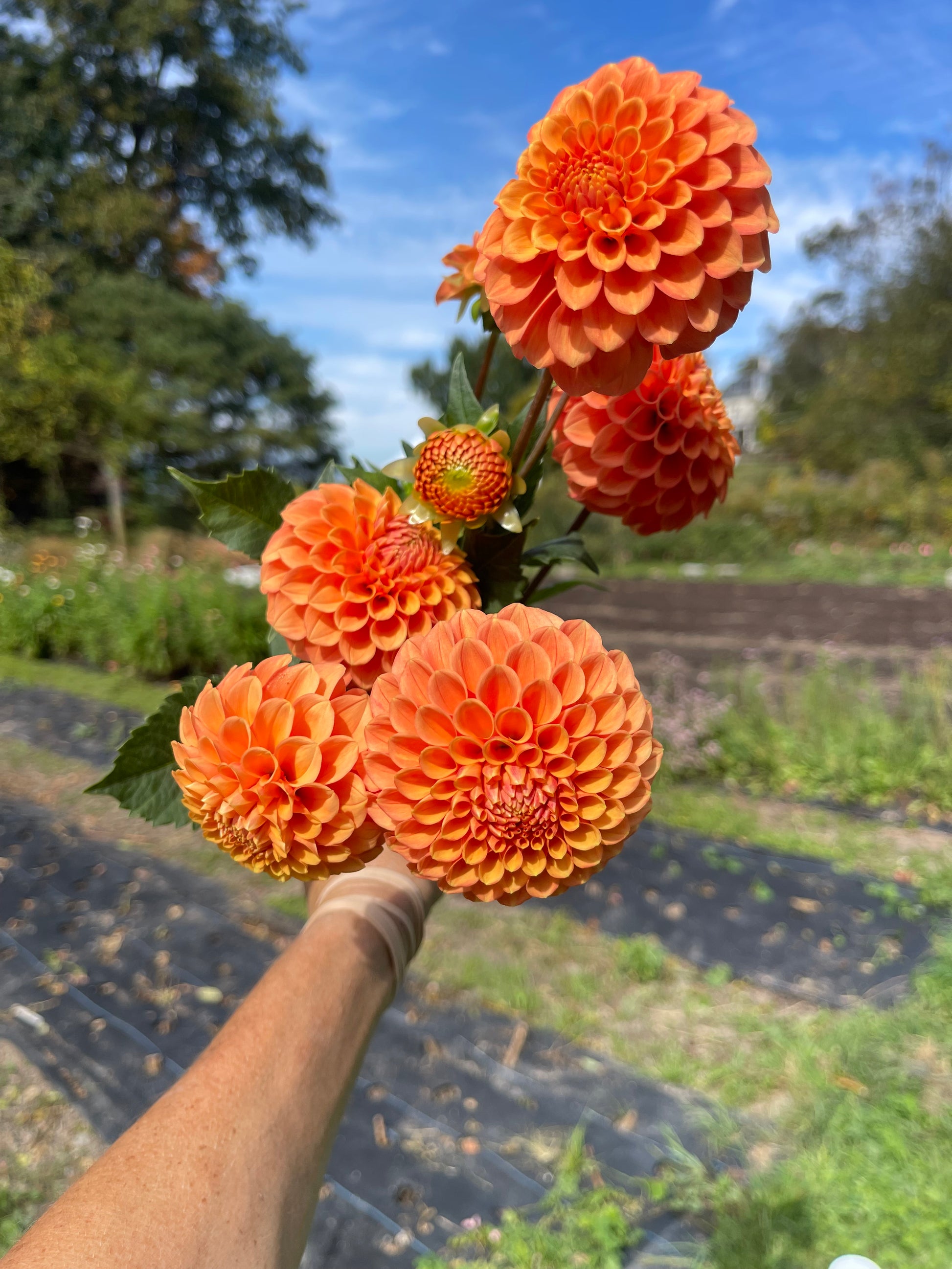 A true orange ball form with 4” flowers that top 4.5' plants here. This excellent cut flower blooms earlier than many.