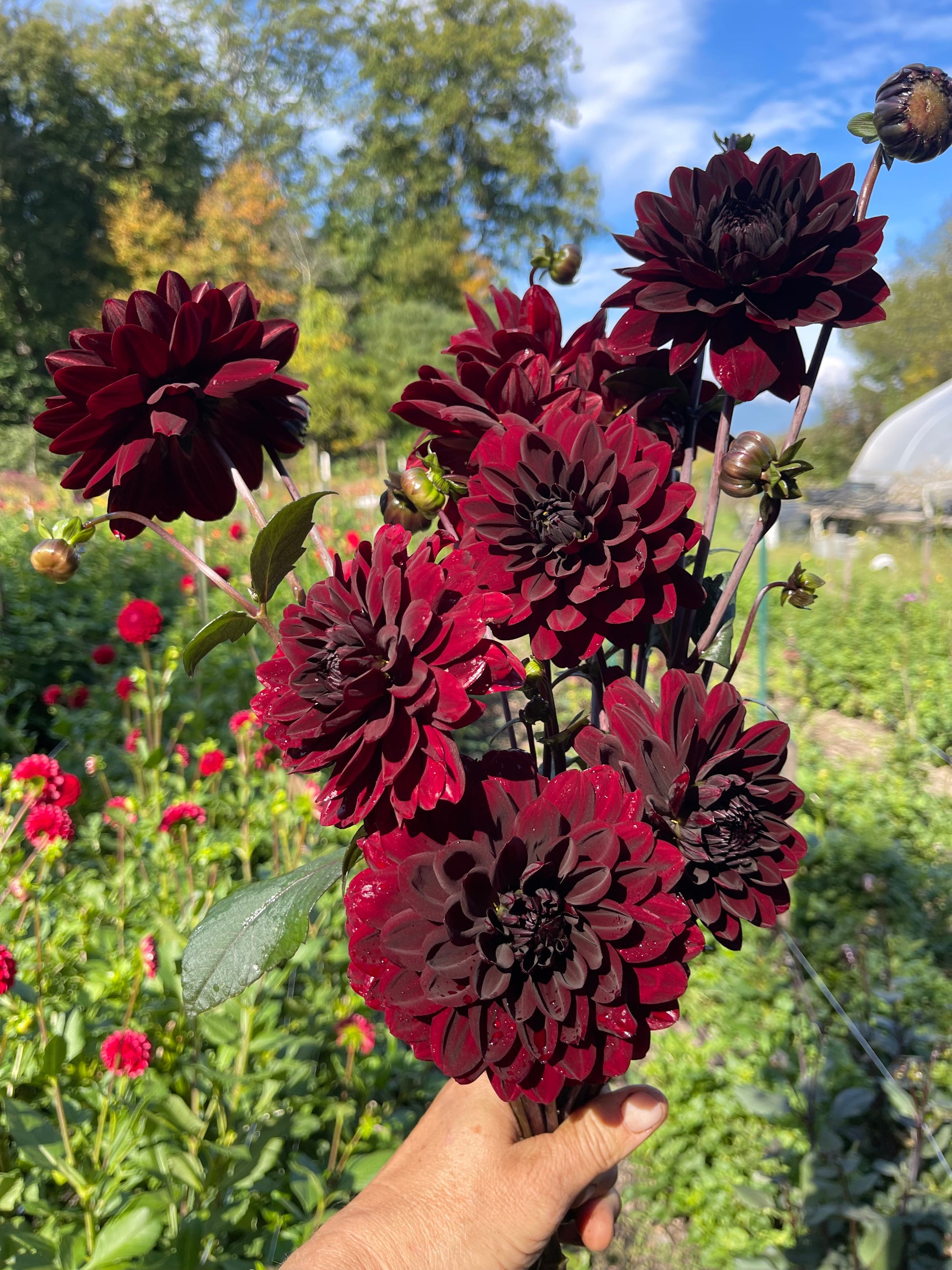 A dark red velvet waterlilly type with signature dark foliage. Apparently great for dyeing as well as for admiring!