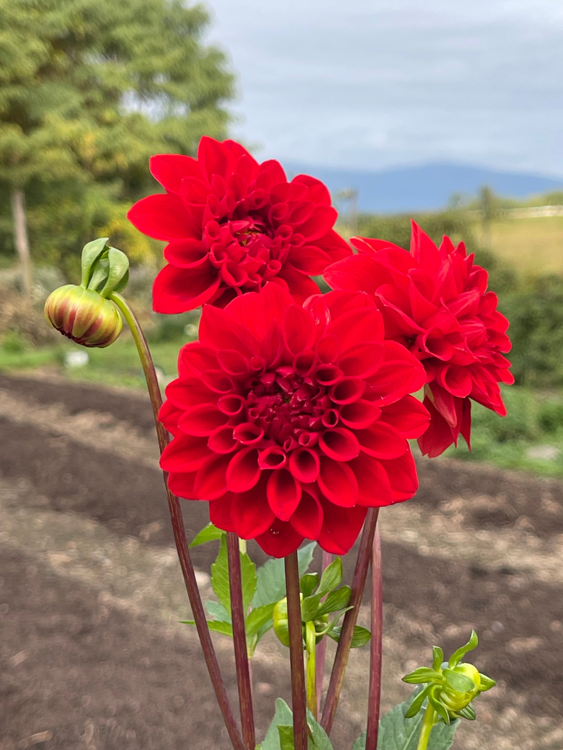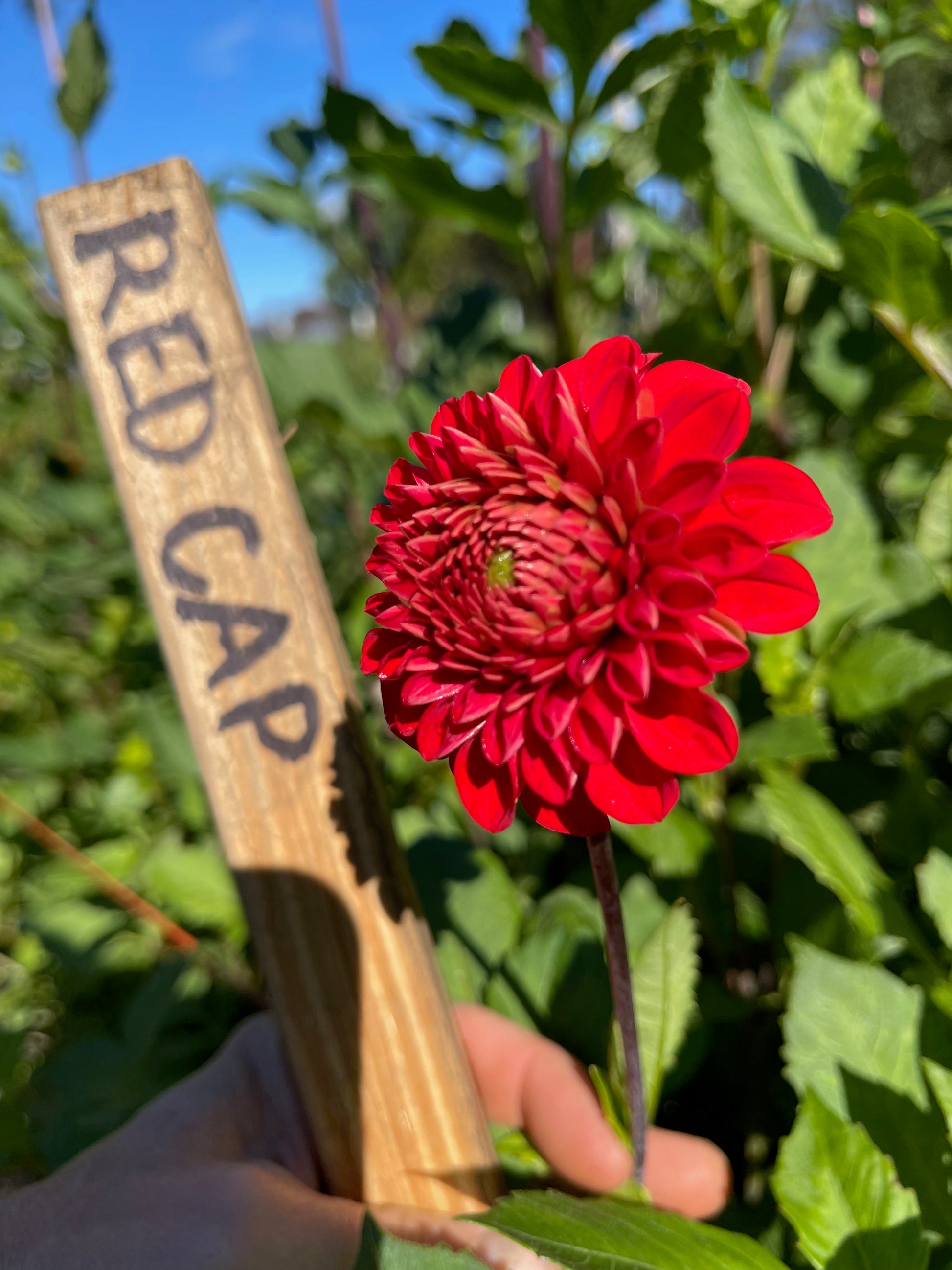 A scarlet red ball-type dahlia, super duper productive and reliable.