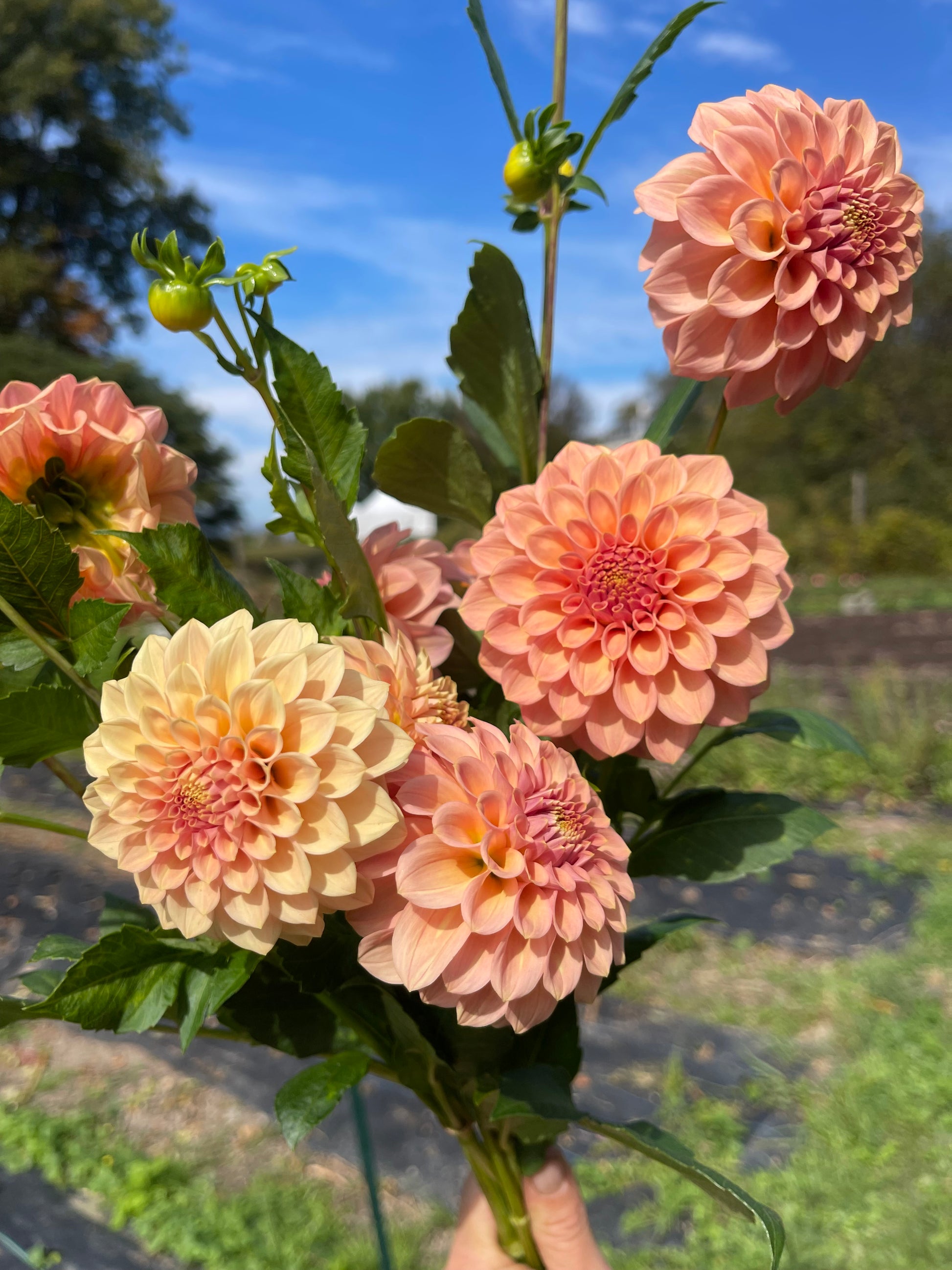 This dahlia has lovely buff orange flowers that are a medium sized ball.