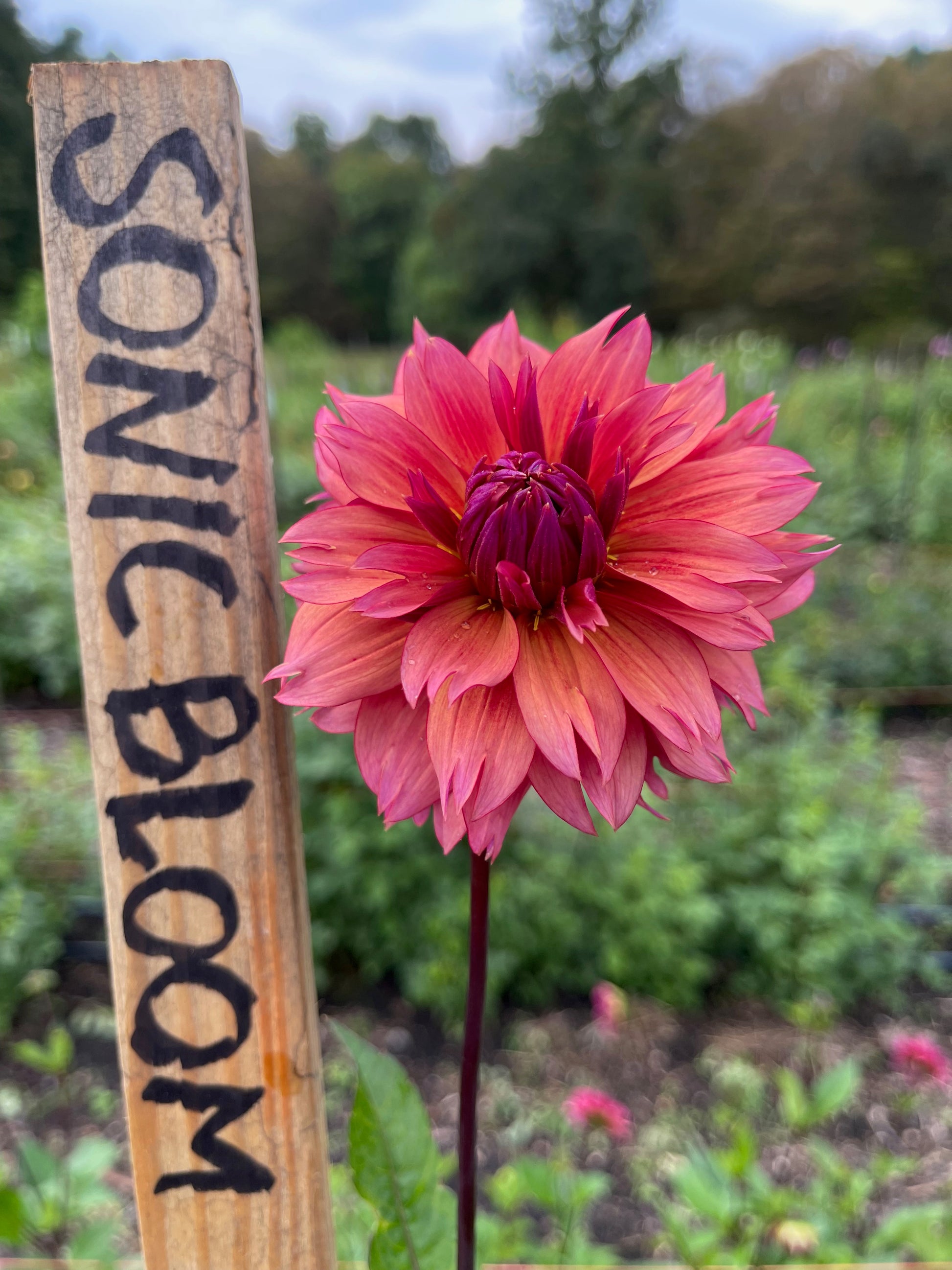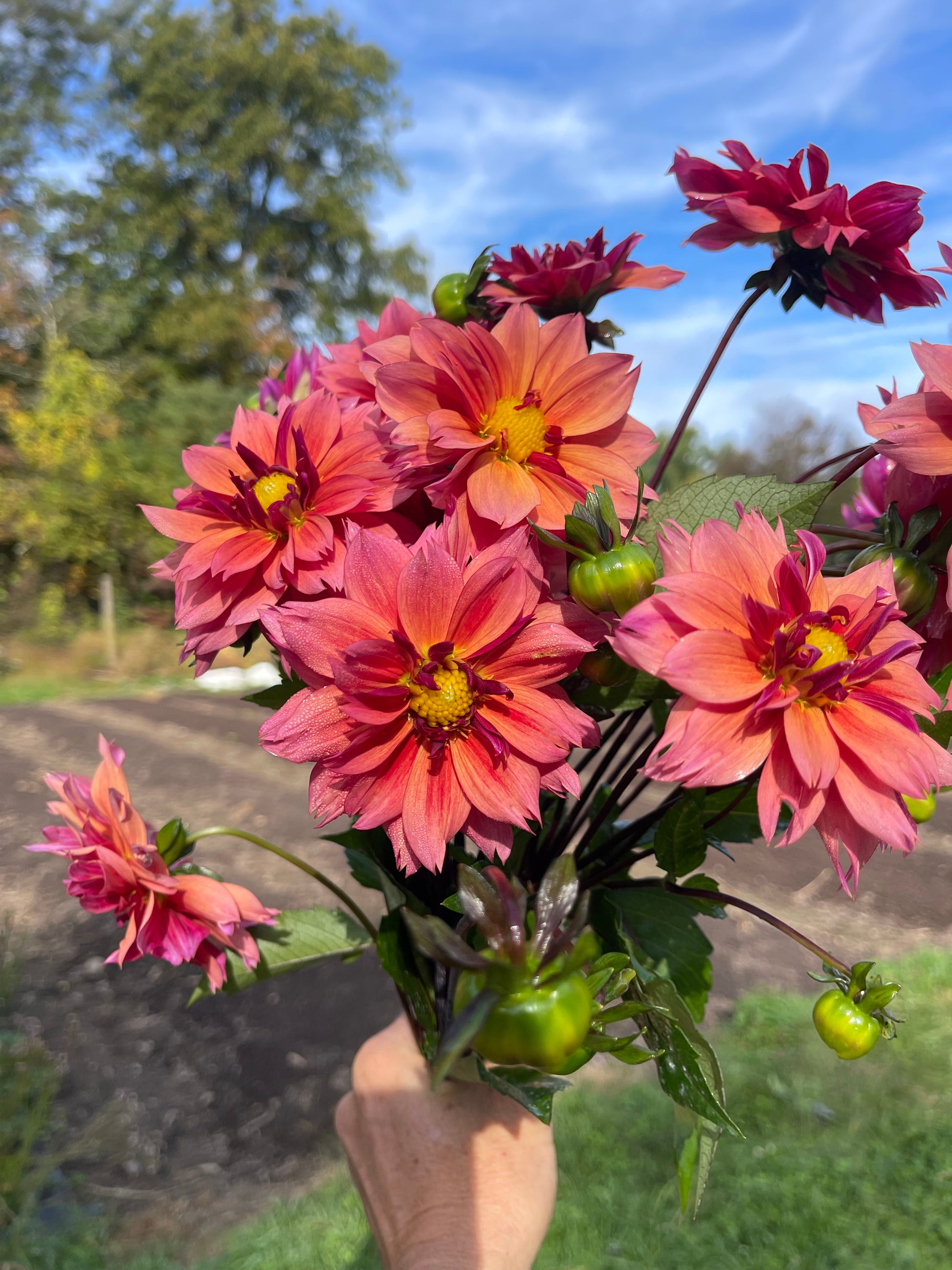 This is one of the most productive dahlias I have. The 4” flower heads are a blend of coral orange, pinks with a little purple. They basically go with everything.